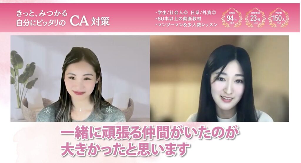 みんな他の人の成功を心から喜べるような人たちばっかりなので、その人間性もやっぱりCA受験する上で大事かなと思いました。