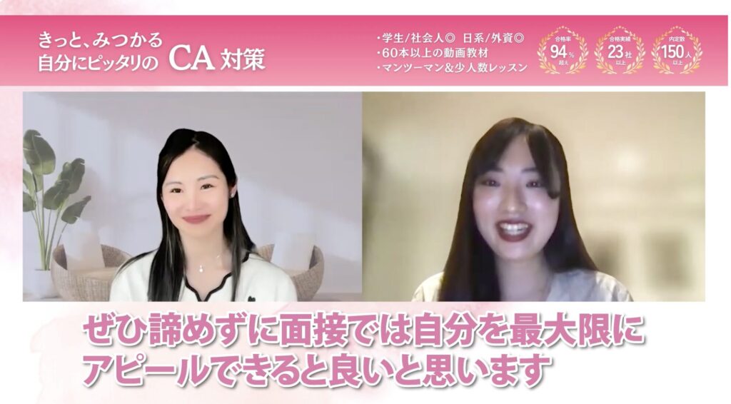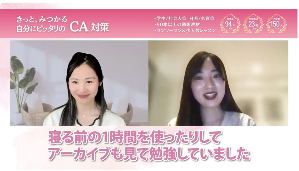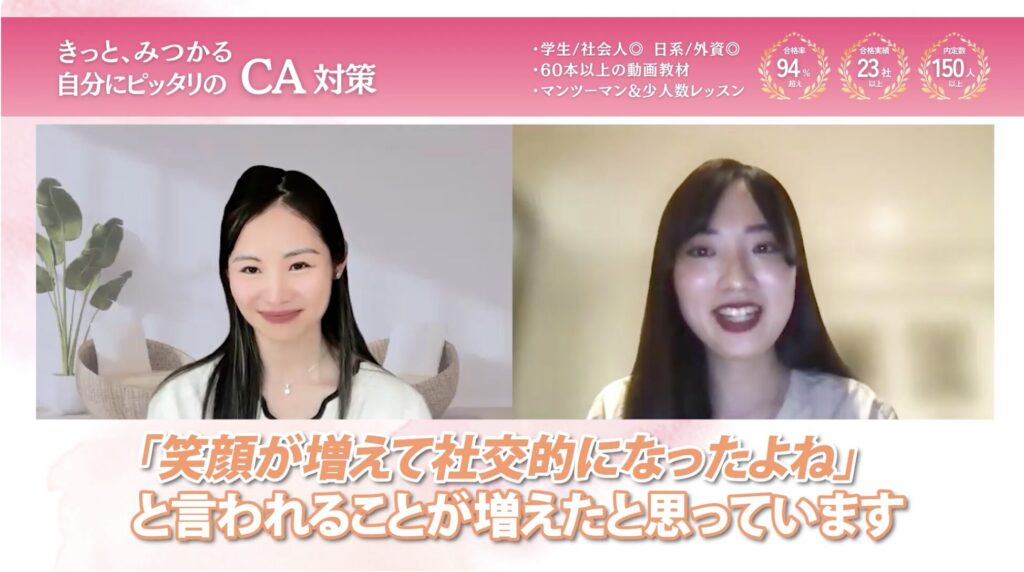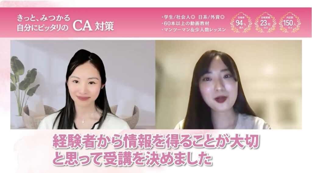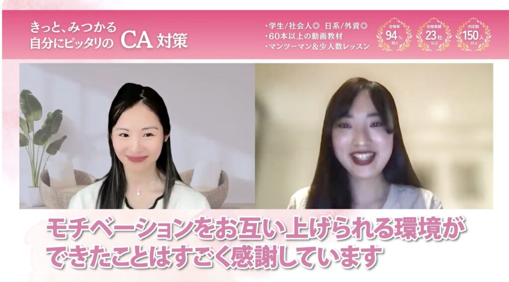 私は外資系のCAを目指していたので、「なりたい」という気持ちだけでは面接対策をしていく上で限界があると感じていました。